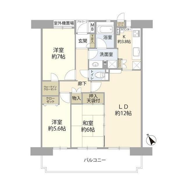 | 間取り内訳 | LD12 K3.8 洋室7 洋室5.6 和室6 |